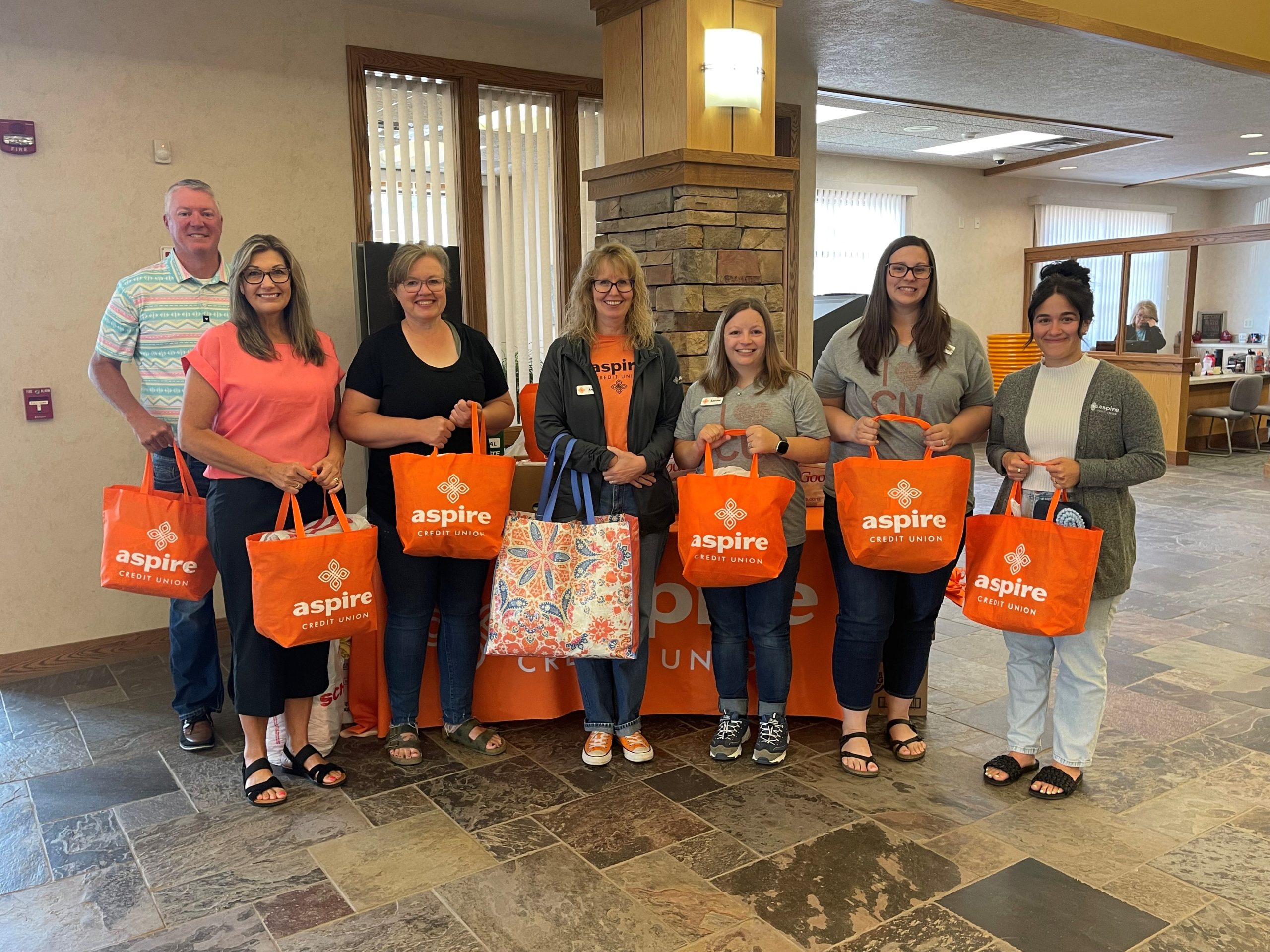 During the month of June, Aspire Credit Union kicked off the partnership by collecting bathroom items. Focused on furnishings for the bathroom, we collected things like towels, washcloths, shower curtains, hair dryers, and hair tools.