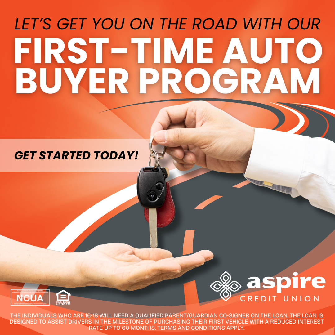 At Aspire Credit Union, we are proud to introduce our First-Time Auto Loan Borrower Program!