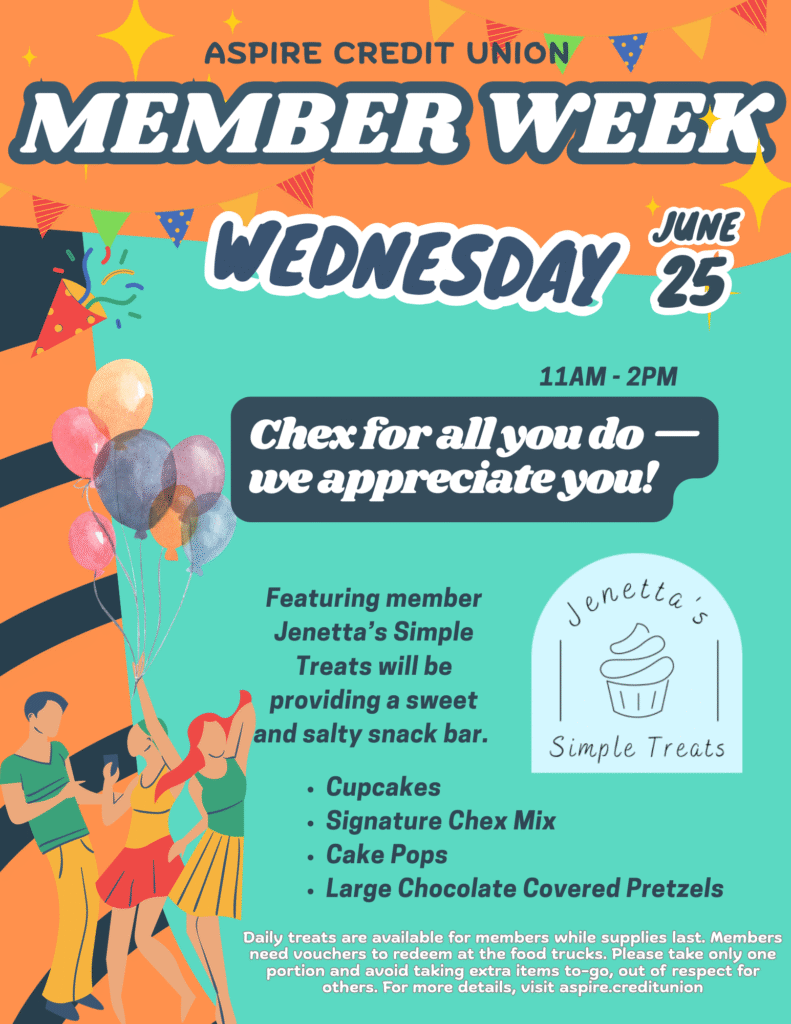 Jenetta’s Simple Treats will be providing a sweet and salty snack bar with chocolate covered pretzels, cake pops, Chex-mix and more.
