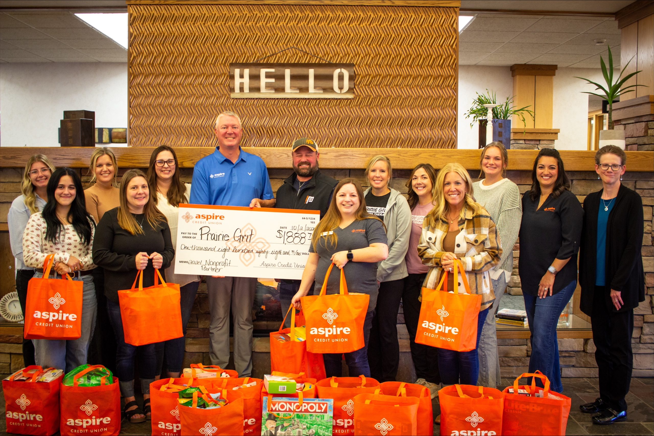 August was dedicated to supporting Prairie Grit’s Speech Therapy program. Their therapists use evidence-based methods and personalized interventions to improve children’s speech clarity, language comprehension, and social communication skills. Aspire Credit Union encouraged members to follow Prairie Grit’s wish list, which included developmental games, toys, Clorox wipes, AA and AAA batteries, and baby wipes.